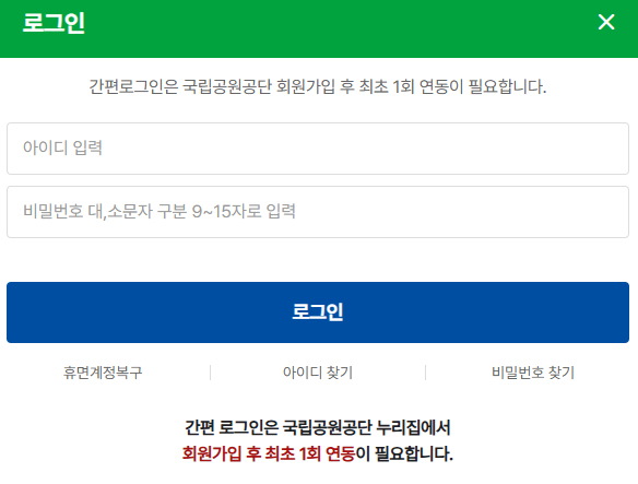 예약을 진행하려면 먼저 국립공원 예약시스템 홈페이지에 접속해 회원가입 후 로그인을 해야 합니다. 네이버, 카카오 등의 간편 로그인도 지원됩니다.