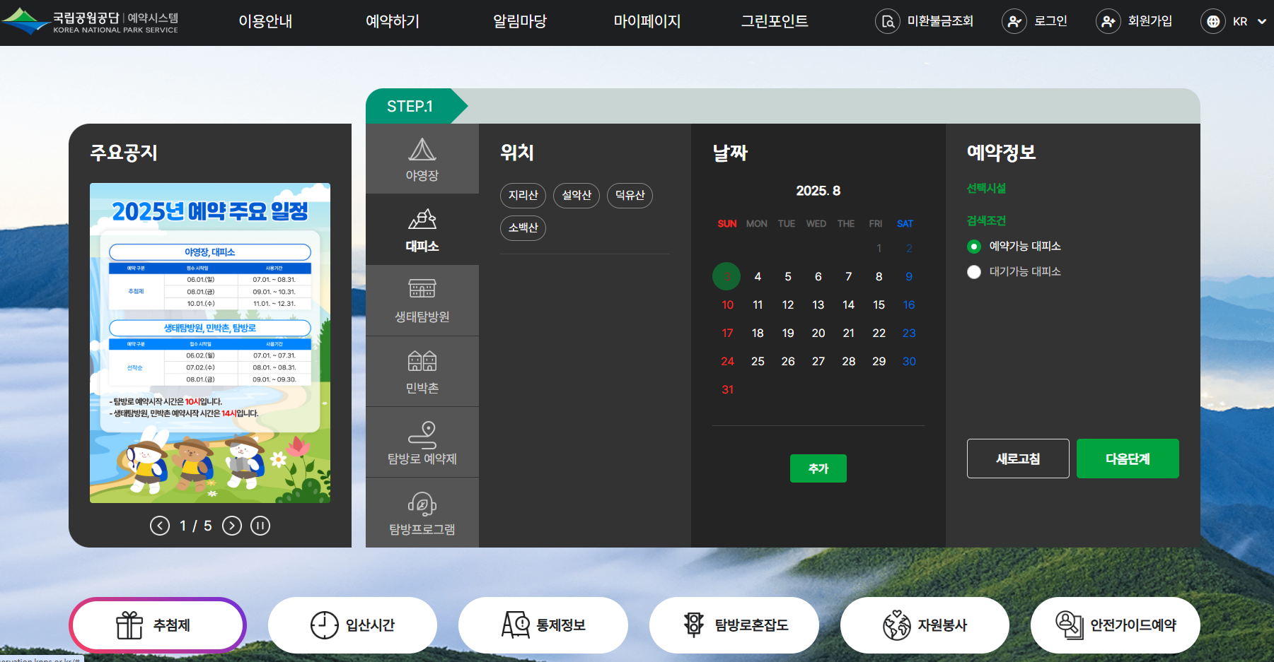 국립공원 예약시스템 (https://reservation.knps.or.kr)