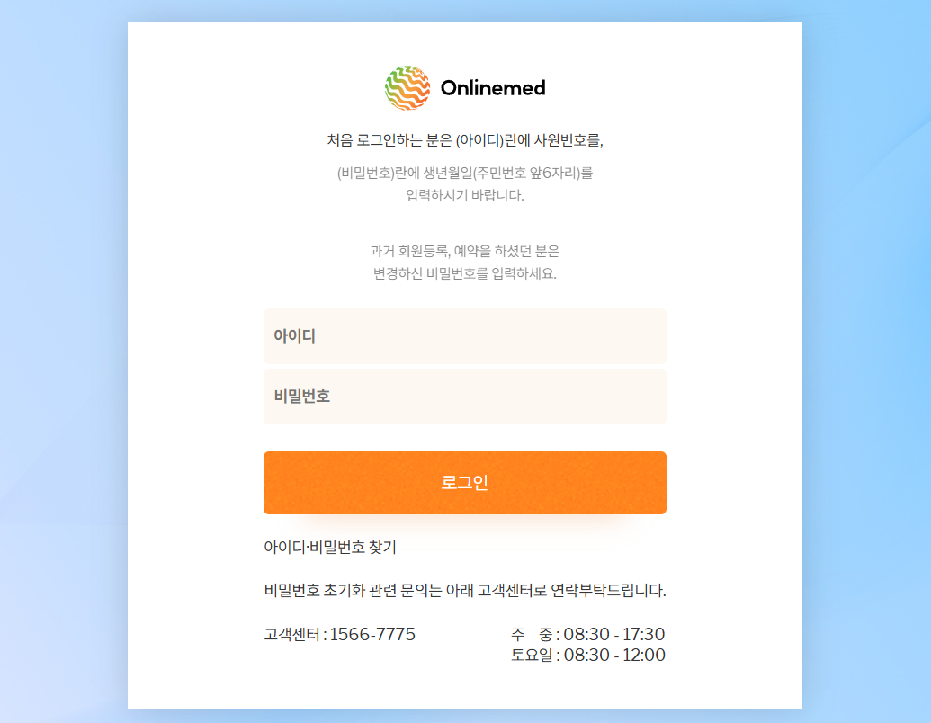 온라인메드 예약센터는 별도의 앱 설치 없이 웹사이트 접속만으로 이용이 가능합니다. 예약 방법은 다음과 같습니다.