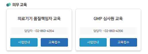 교육 과정은 품목허가, 임상시험, GMP(의약품 제조 및 품질관리 기준), 위해성 관리, 의료기기 디지털 전환 등 분야별로 구성되어 있으며, 정기적으로 콘텐츠가 업데이트됩니다.