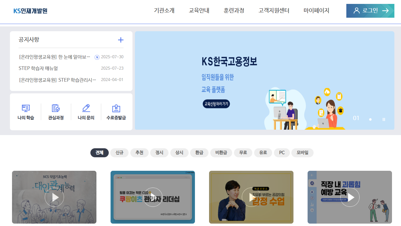 STEP은 ‘Smart Training Education Platform’의 약자로, 국민내일배움카드와 연계해 직업훈련 콘텐츠를 손쉽게 수강할 수 있도록 설계된 국가 직업훈련 포털입니다. 훈련 대상은 구직자뿐 아니라 재직자, 자영업자, 특수고용형태 근로자 등 직업능력 개발이 필요한 국민 전반으로 매우 폭넓습니다.