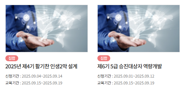 이 시스템은 기본적으로 교육 과정 검색, 수강 신청, 출결 관리, 교육자료 열람, 수료증 발급 등 교육과정 전반에 걸친 기능을 제공합니다. 특히 로그인만 하면 수강 가능한 교육 과정을 한눈에 확인할 수 있어, 반복적인 행정 절차 없이도 간편하게 신청할 수 있는 점이 장점입니다.