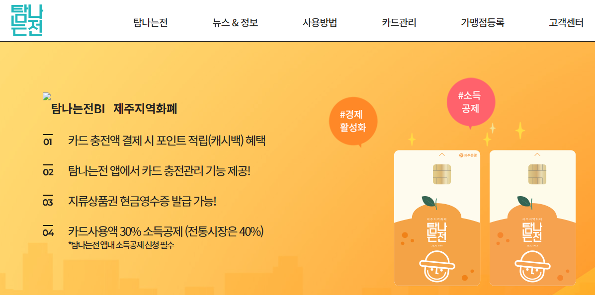 탐나는전 제주지역화폐는 제주도에서만 사용할 수 있는 지역화페입니다. 지역경제를 살리고 도민의 생활에 실질적인 혜택을 주기 위한 서비스입니다. 해당 사이트 바로가기는 다음과 같습니다.