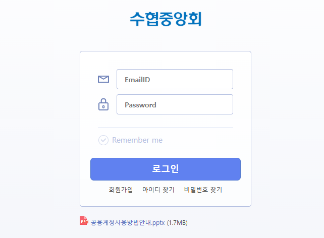 수협중앙회 웹메일은 수협중앙회 그룹웨어 사이트를 통해 접속할 수 있으며, 일반적으로 내부 임직원 전용으로 구성되어 있습니다. 최초 접속 시에는 조직 내 발급받은 사용자 계정과 비밀번호를 통해 로그인하며, 보안을 위해 정기적인 비밀번호 변경이 권장됩니다.