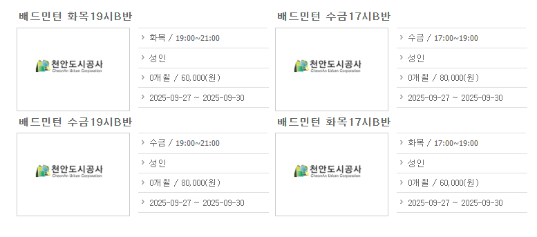 천안도시공사 인터넷 통합예약시스템은 체육시설부터 공공주차장, 문화강좌, 강당 및 회의실 대관 등 다양한 분야의 공공자원을 하나의 플랫폼에서 예약하고 이용할 수 있도록 제공합니다.