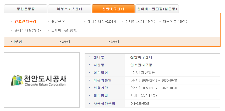 천안도시공사 - 인터넷 통합예약시스템