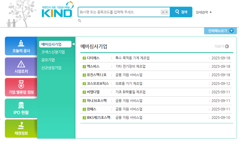 https://kind.krx.co.kr/main.do?method=loadInitPage&scrnmode=1