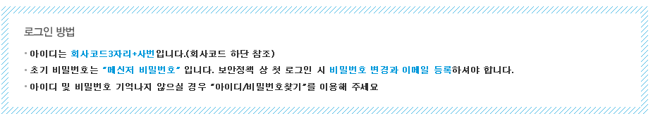 기업명 ID 기업명 ID 기업명 ID KT&G ktg + 사번 인삼공사 kgc + 사번 영진약품 yjp + 사번 COSMOCOS smc + 사번 라이프앤진 gin + 사번 태아산업 tae + 사번 KGC예본 kyb + 사번 상상스테이 ssi + 사번 인삼공사스포