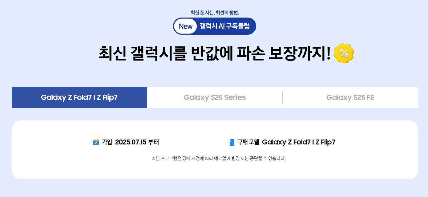 New 갤럭시 AI 구독클럽은 최신 갤럭시 S 시리즈와 Z 시리즈를 중심으로 제공되며, 일정 금액의 월 이용료를 납부하면서 기기를 사용하고, 일정 기간 이후에는 잔존가 보장 혜택을 통해 새 기기로 교체할 수 있는 기회를 제공합니다.
