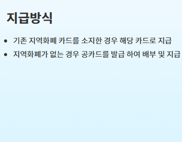 이미 지역화폐 카드가 있는 경우 기존 카드를 사용하고, 카드가 없는 경우 공카드 등을 발급하여 지급합니다.