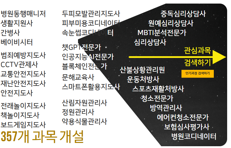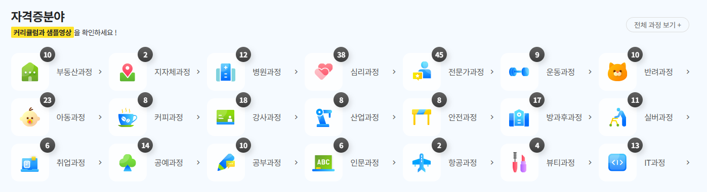 • 다양한 직무 자격증 과정이 준비되어 있습니다.