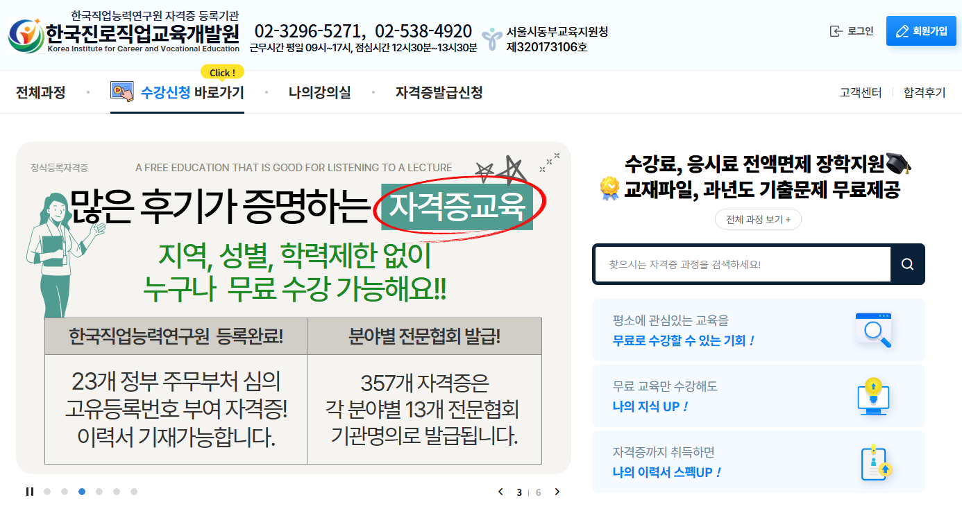 한국진로직업교육개발원은 온라인 기반의 진로·직업교육 및 자격증 취득 지원 사이트로, 직무 능력 향상과 자격증 취득을 준비할 수 있도록 도와주는 교육 플랫폼입니다. 해당 사이트 바로가기는 다음과 같습니다.