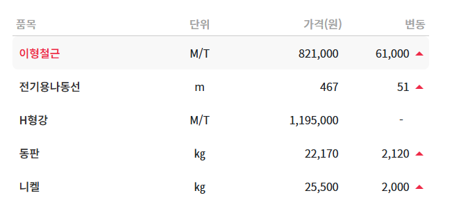 - 산업별 가격 데이터