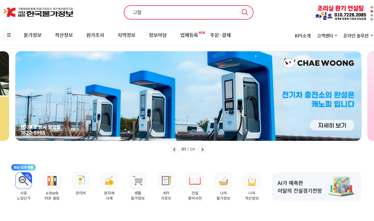 - 적산정보 (표준일위대가, 실용일위대가 등)