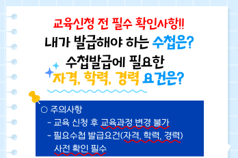- 양성교육, 인정교육, 전문교육 등 다양한 과정이 체계적으로 운영됩니다.