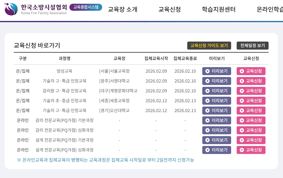 - 양성교육: 소방시설 입문자를 위한 기초 과정