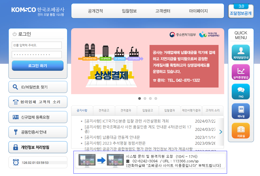 한국조폐공사 전자조달통합시스템 (ebid.komsco.com)
