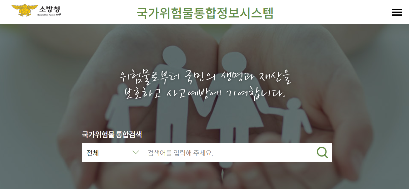 국가위험물 통합정보시스템은 소방청에서 운영하는 사이트로 위험물과 관련 정보를 제공하는 웹사이트입니다. 위험물에 대한 상세한 물질 정보 검색, 통계 및 자료 열람, 안전관리 지침 확인 등을 확인 가능합니다.
