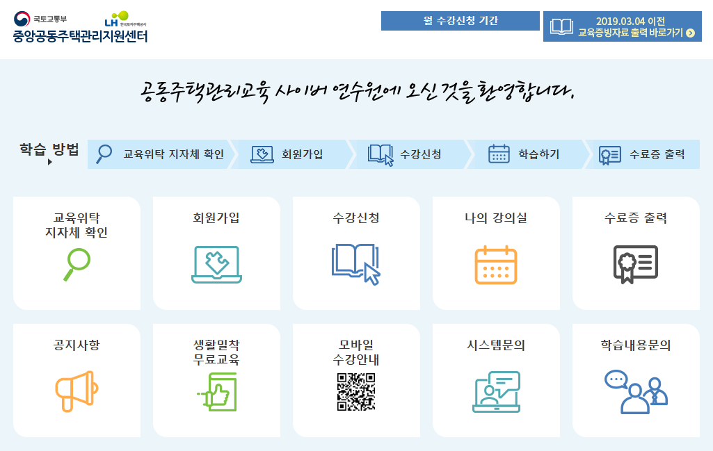 공동주택관리법에 따라 일정 대상자는 반드시 정기적으로 교육을 이수해야 합니다. 이를 위해 운영되는 온라인 교육 시스템이 바로 사이버 연수원입니다. 해당 연수원에서는 법정 의무교육뿐 아니라 실무 중심 교육까지 함께 제공하여 관리 역량을 높이는 데 도움을 줍니다.