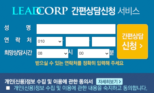 리드코프 고객센터 전화번호는 1544-2525인데요. 상담가능시간은 평일 오전 8:30~오후 6시까지 입니다. 고객센터를 통하지 않더라도 홈페이지에서 빠르고 편리한 1:1 채팅상담이 가능하니 참고하세요. 리드코프 홈페이지 주소는 www.leadcorp.co.kr/ 입니다.