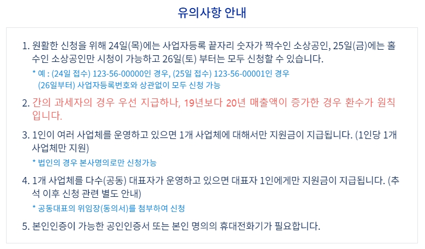 5. 24~25일 사업자등록번호 끝자리의 홀짝제로 신청