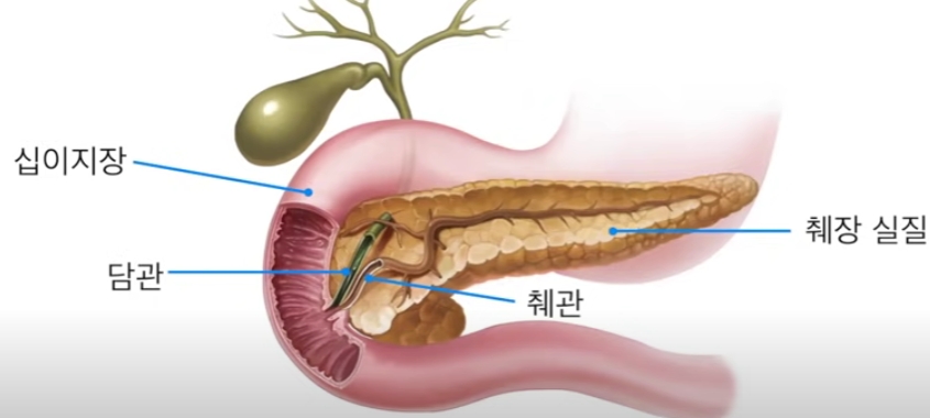 먼저 췌장은 우리 몸 깊숙한 곳에 위치하고 있는데요. 후복막이란 장소에 위치하며 췌장의 기능은 크게 두 가지 기능이 있습니다. 첫번째는 소화 기능이며 두번째는 우리 몸의 혈당을 조절하는 내분비 기능이 있습니다.