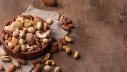 견과류에는 팔피 폴레산이라는 성분이 함유되어 있어서 혈관을 튼튼하게 해주고 비타 e가 풍부하게 함유되어 있어 혈액순환을 촉진시켜줍니다.
