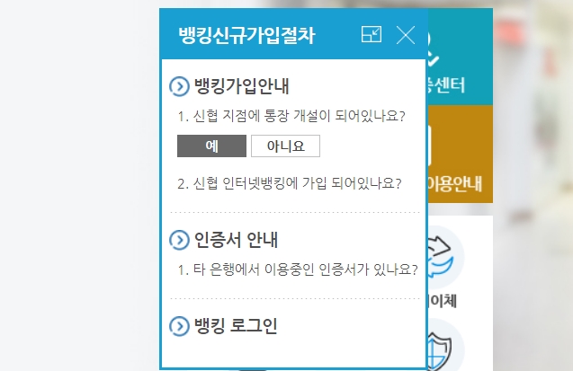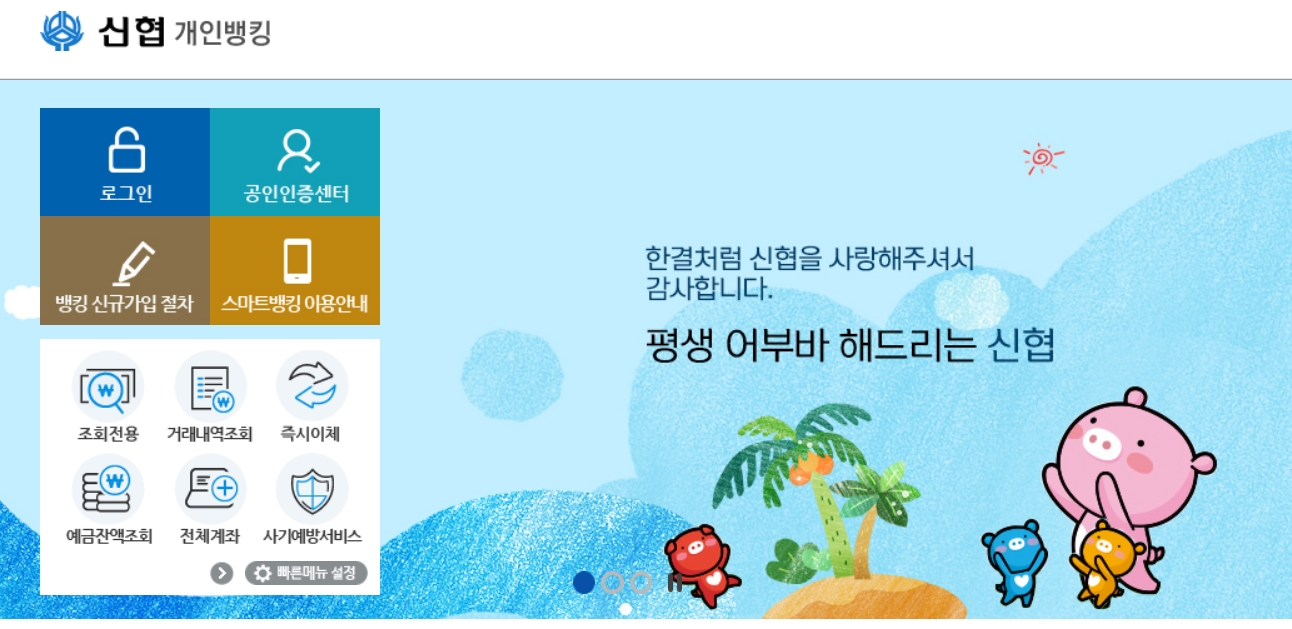 그리고 신협 홈페이지로 접속하시면 위와 같이 보이실텐데요. 여기가 신협 메인 페이지입니다.
