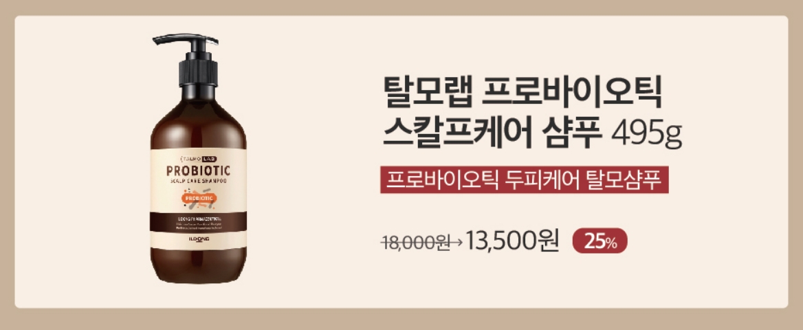 또한 다양한 상품을 세일 이벤트 중인데요. 현재 올라온 이벤트를 확인해보니 탈모증상에 효과가 좋은 '탈모랩' 제품 이벤트를 진행중입니다. 탈모랩 1만원이상 구매시 퍼스트랩 샘플 키트를 증정한다고 하네요. 탈모샴푸도 정가 18,000원짜리 샴푸를 25% 할인된 13,500원에 이벤트가에 판매중입니다.