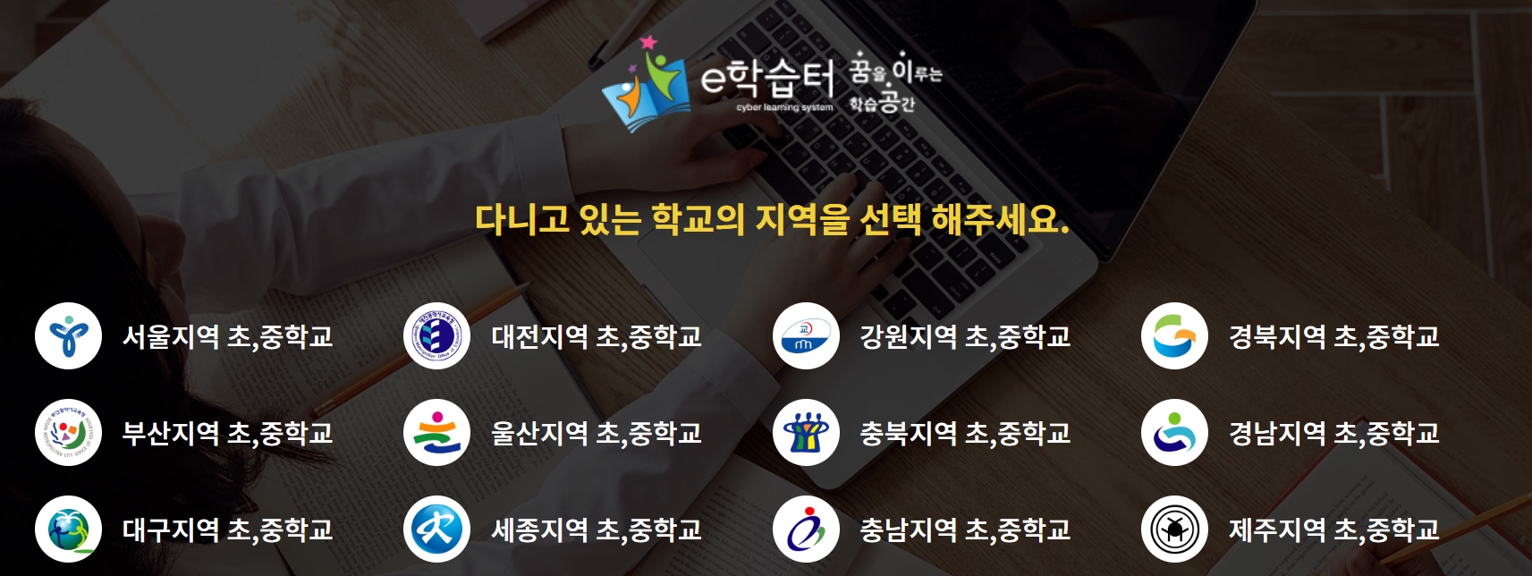 e학습터는 EBS와 같은 온라인 클래스로 학생들의 온라인학습을 지원하고, 자율학습을 돕는 콘텐츠를 무료로 제공하고 있습니다. 홈페이지 접속시 각 지역별로 선택하실 수 있습니다.