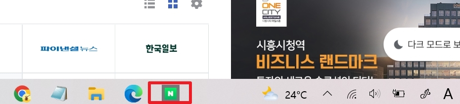 그러면 아래와 같이 작업표시줄에 네이버아이콘이 만들어집니다.