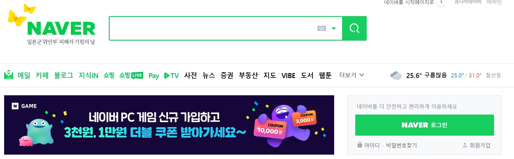 방법은 어렵지 않은데요. 먼저 네이버 홈페이지 바로가기 주소는 아래와 같습니다.