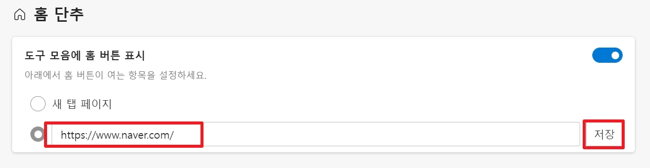 엣지 시작페이지 등록