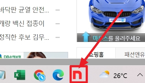 그러면 아래와 같이 작업표시줄에 네이트아이콘이 만들어집니다.