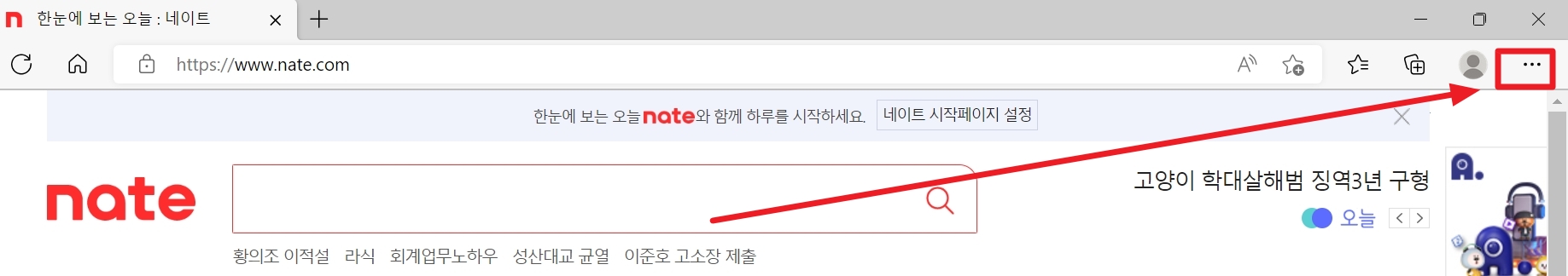 원래는 우측 점세개 모양을 클릭후 설정으로 접속후 시작 > 홈단추에 네이트 주소를 입력하면 네이트가 기본페이지로 설정되어야 하는데요. 현재는 이 설정을 해도 시작페이지가 네이트로 바뀌지 않습니다.