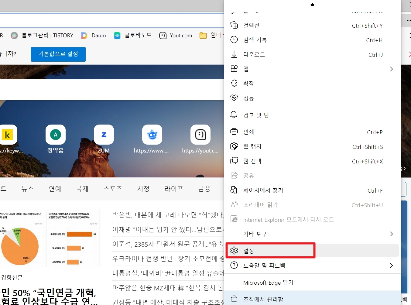 보통 크롬과 엣지(구 인터넷 익스플로러)를 많이 사용하기 때문에 두가지 버전을 안내해드리겠습니다.