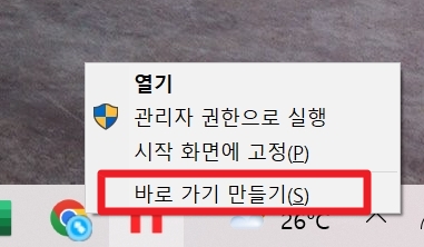 위의 방법을 통해 작업표시줄에 네이트 고정하기까지 완료하신 후 shift 버튼을 누른상태에서 작업표시줄의 네이트 아이콘 우클릭시 바로가기 만들기가 보이는데요. 이부분을 클릭해주세요.
