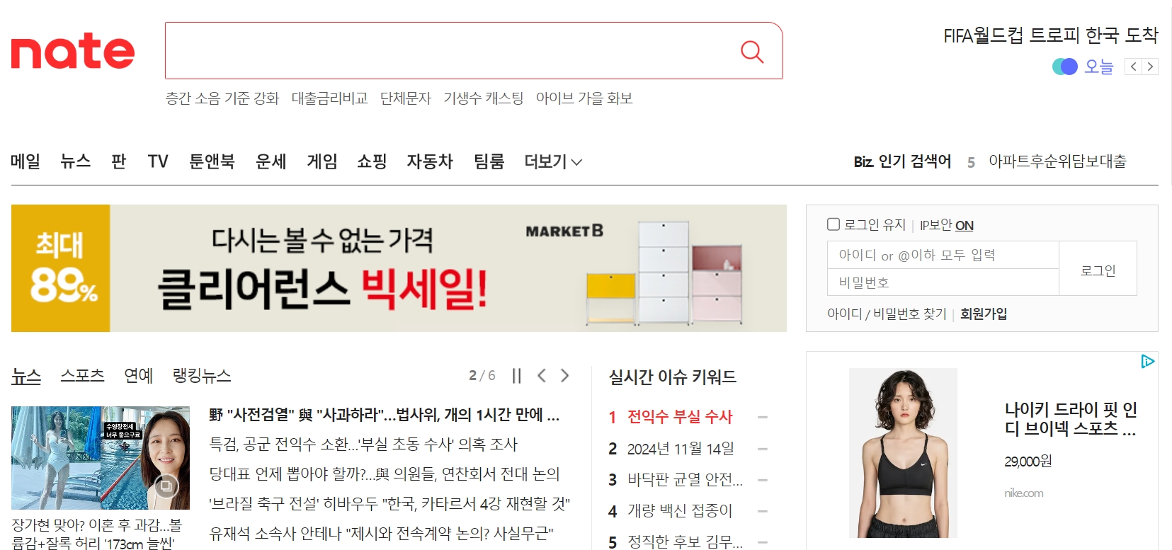 방법은 어렵지 않은데요. 먼저 네이트 홈페이지 바로가기 주소는 아래와 같습니다.