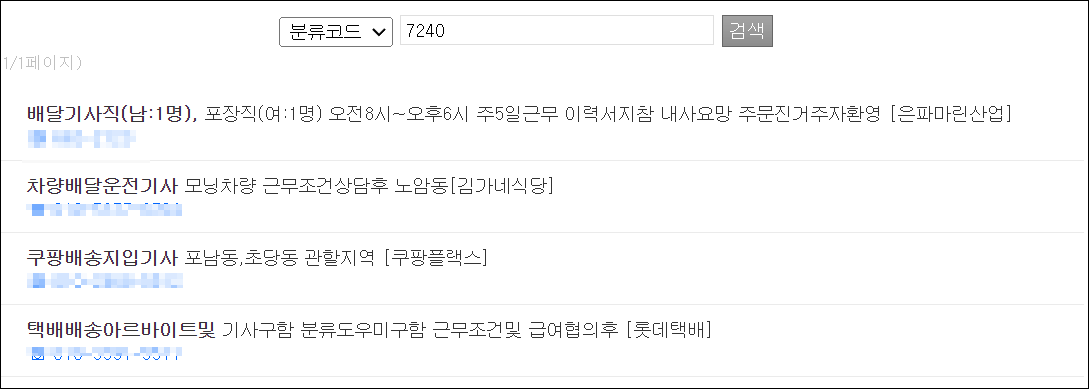 3) 구인정보에서 원하는 직종 선택하기