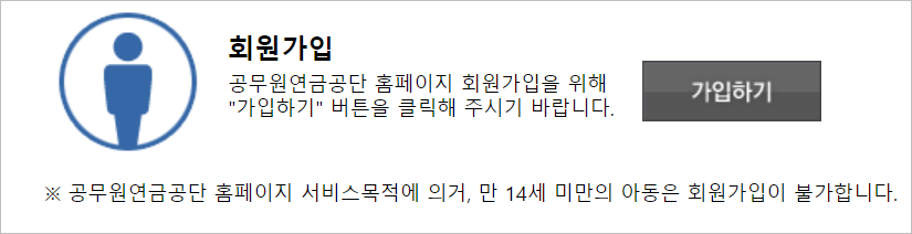 4. 신규회원가입시 공무원연금공단 홈페이지 가입을 위해 [가입하기] 버튼 클릭